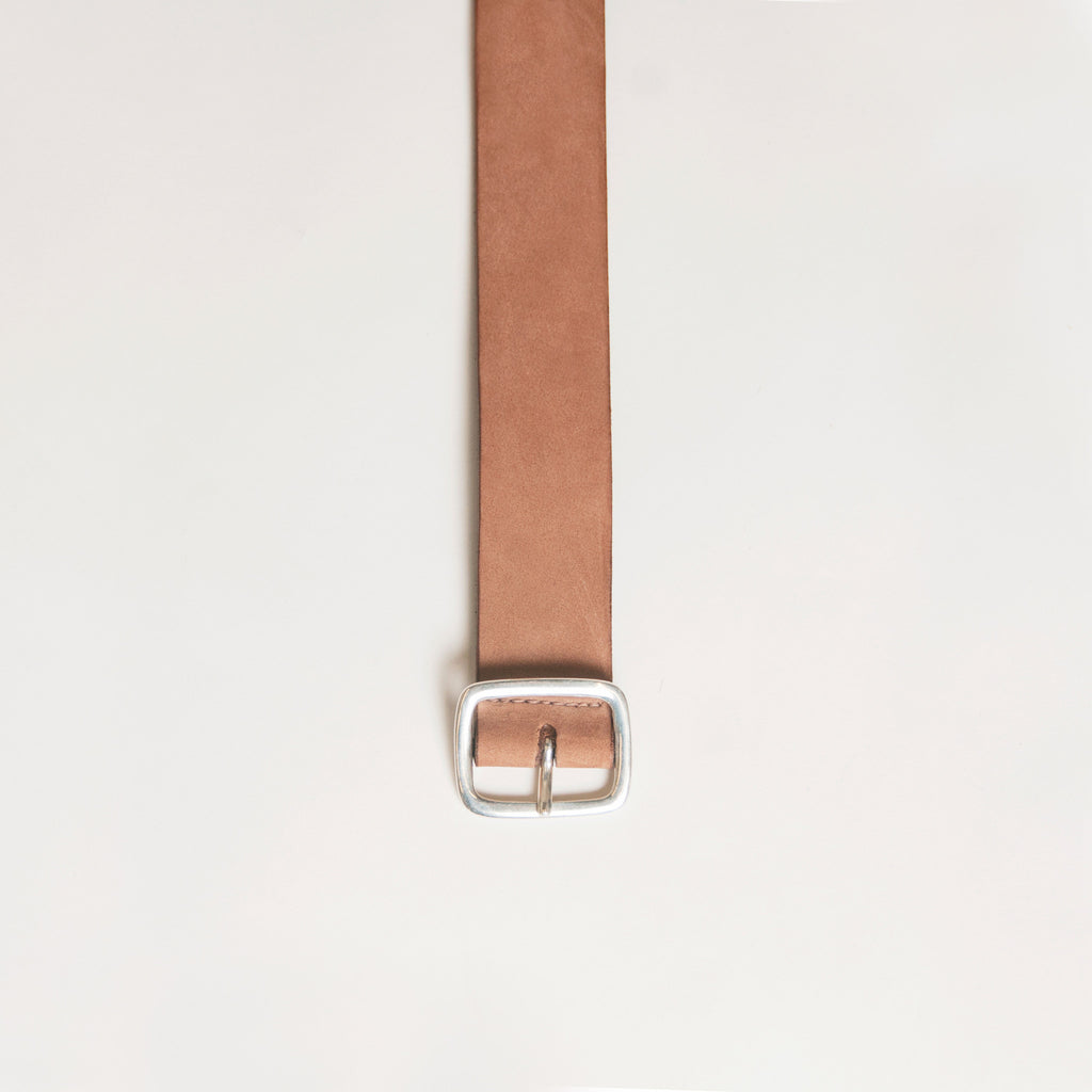 When we came across this nubuck leather in an Italian tannery, it looked so rich and creamy we weren't sure if we should make it into belts or chocolate pudding. After three or four bites, we had our answer: Belts. For a buckle, we decided we needed something really special, something that could go toe to toe with Italian nubuck that Bill Cosby might mistake for dessert. Our solution: these sterling silver buckles made by Arizona artist Mary Daughtrey.
