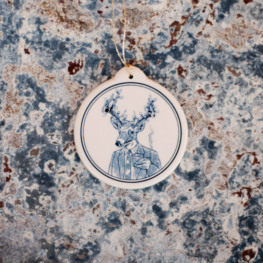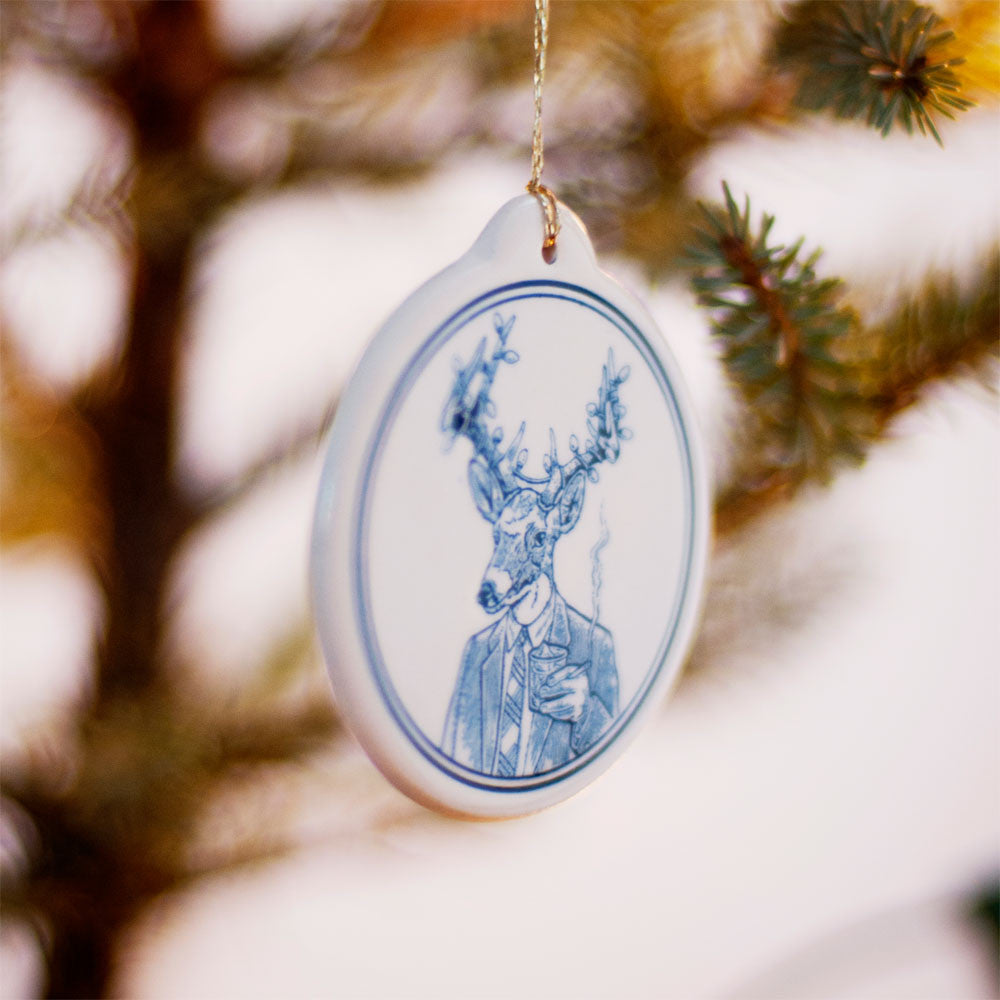Need a last-minute stocking stuffer? Our smoking, drinking man-deer, with lit rack to joyously celebrate the season, has been memorialized in a hand-pressed and glazed clay ornament that makes a perfect gift for anyone on your list. It's an apt token of affection for those who have been a little bit naughty, and an aspirational role model for those who have been a little too nice.