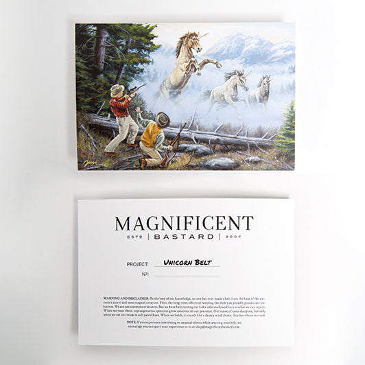 - Comes with numbered postcard reproduction of Darrell Bush's Charge of the Unicorns
