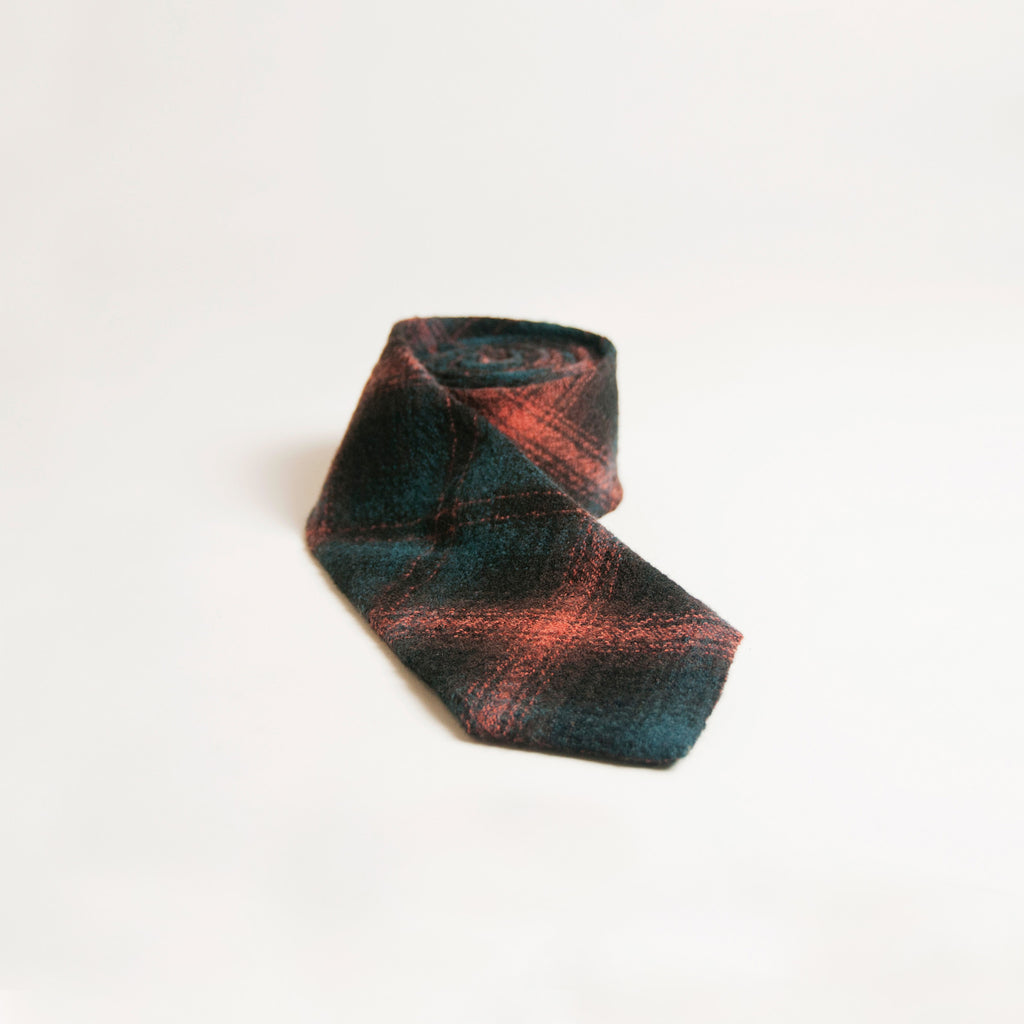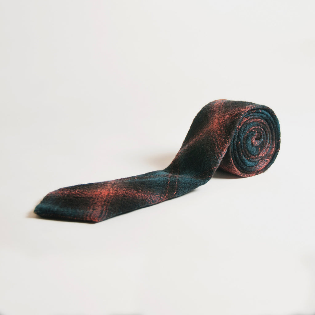 Crafted from a richly textured Japanese wool gauze, with vibrant tones of rust and dark turquoise emerging from its dark heart, the Kakutani is impossible to comprehend in a single reading. Sit with it. Contemplate it. Learn to appreciate its inscrutable but deeply felt mysteries and barely limned resonances. Do not mistake its ethereality for fragility. The Kakutani is a tie that could knock out Norman Mailer with a single punch. And that would be true even if Norman Mailer were still alive. So if you've always wondered why so much premium neckwear lacks the balls to speak honestly and unflinchingly about the vacuousness of Western culture, rejoice. Here's the tie you've been searching for.